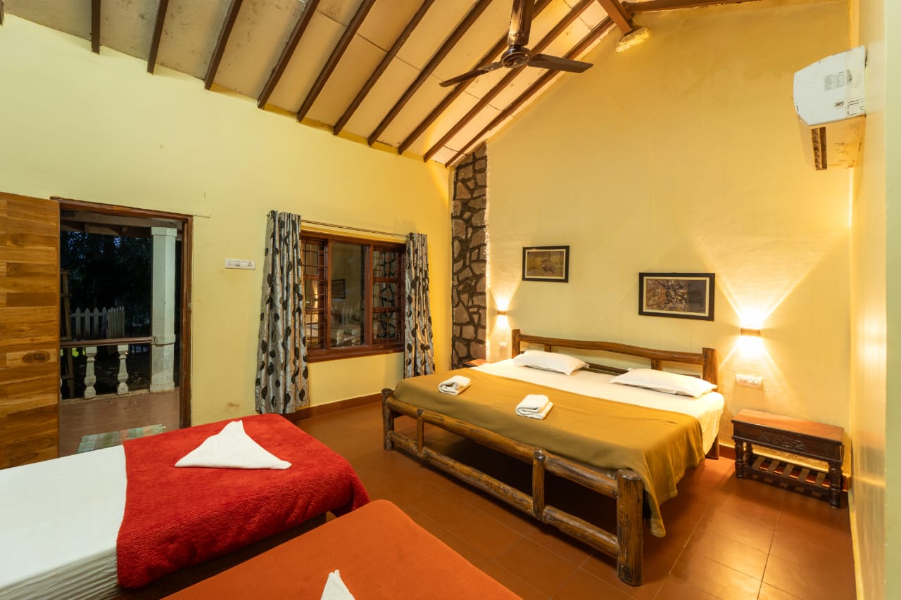 Immerse yourself in a 5-acre paradise of awe-inspiring natural beauty adorned with majestic Rosewood, Betel, and Jackfruit trees, among other wonders. Our resort features 33 enchanting cottages, each with semi-open and open private sit-outs, offering you breathtaking views of the flowing River Kali.